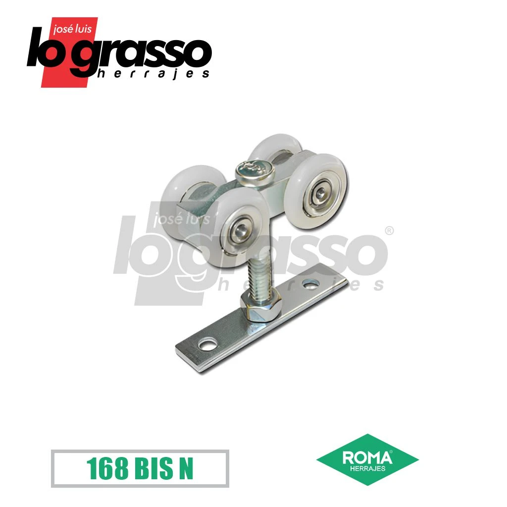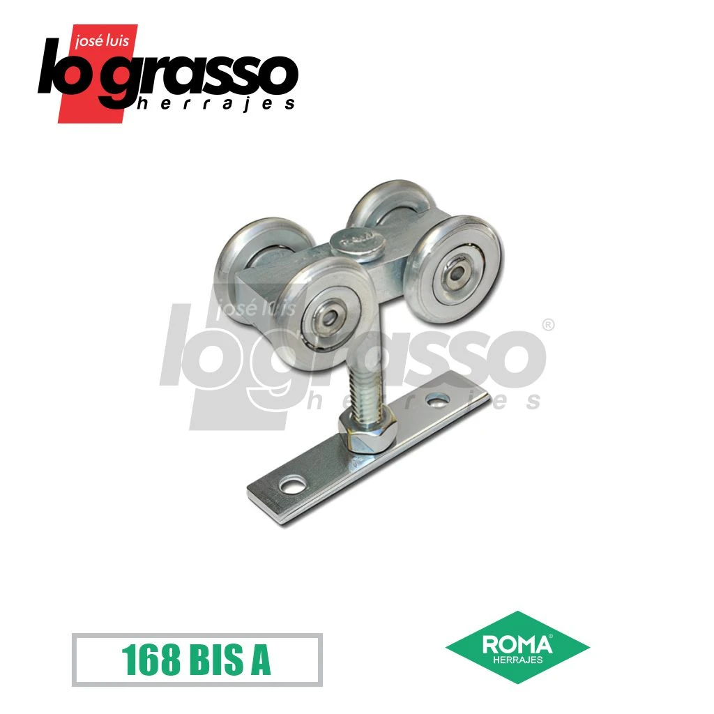 Carro de cuerpo macizo cincado con rulemanes bolilleros de ø20 mm y planchuela regulable perforada.