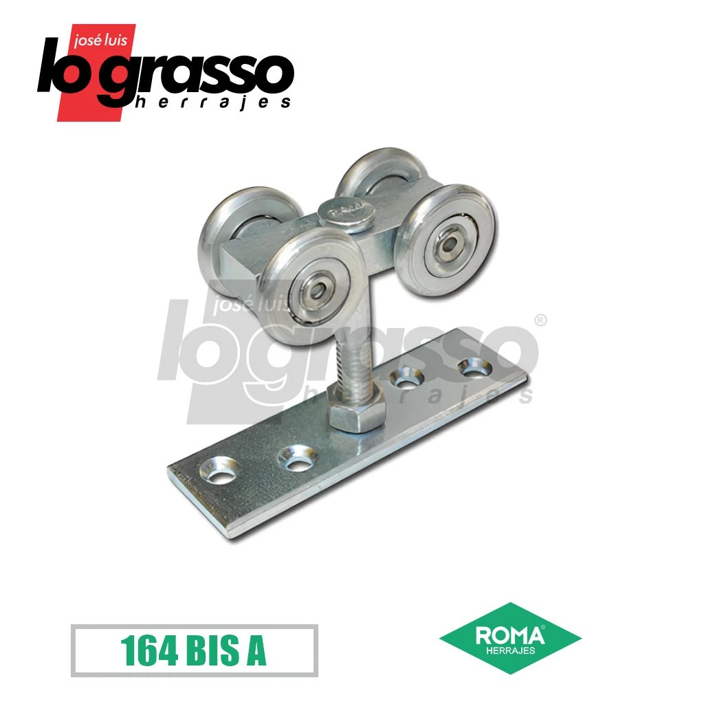 Carro de cuerpo macizo cincado con rulemanes bolilleros de ø25 mm y planchuela regulable perforada.