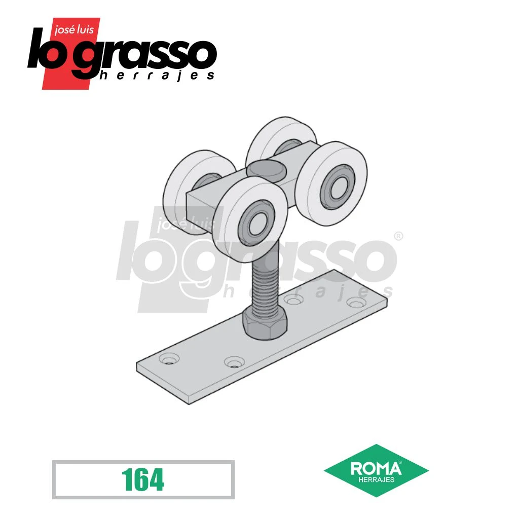 Carro de cuerpo macizo cincado con rulemanes bolilleros de ø25 mm y planchuela regulable perforada.