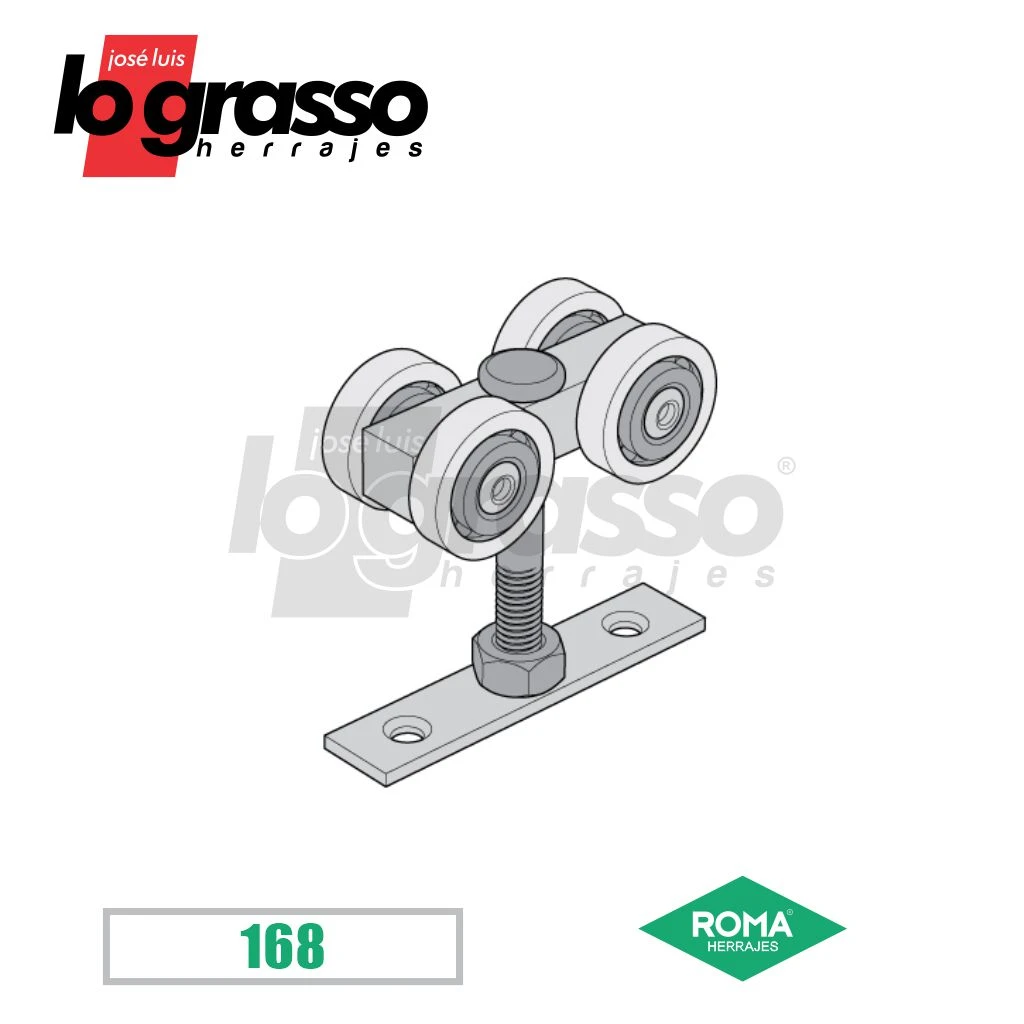 Carro de cuerpo macizo cincado con rulemanes bolilleros de ø20 mm y planchuela regulable perforada.