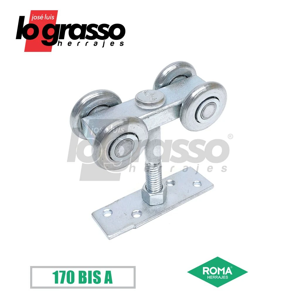 Carro de cuerpo macizo cincado con rulemanes bolilleros de ø32 mm y planchuela regulable perforada.