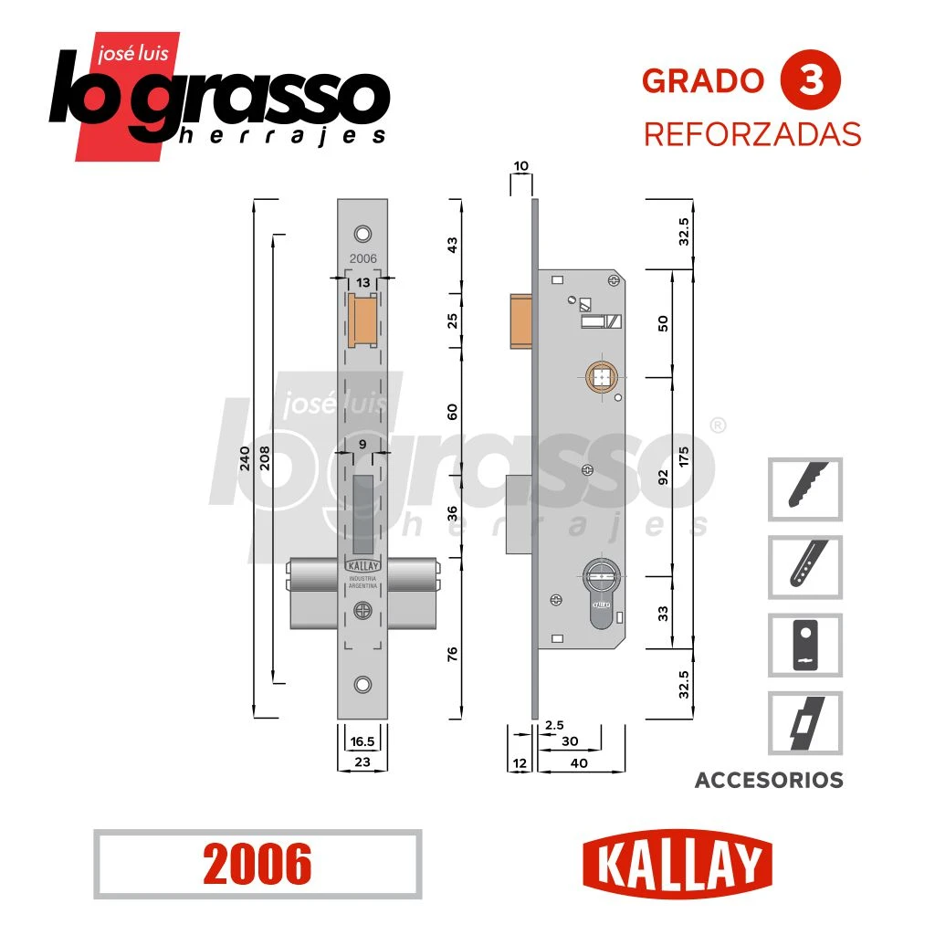 Pestillo entero con punta de bronce trefilado, reversible desde el exterior.