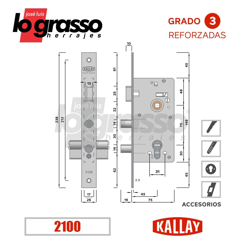 Cerrojo de dos pernos giratorios de acero trefilado.