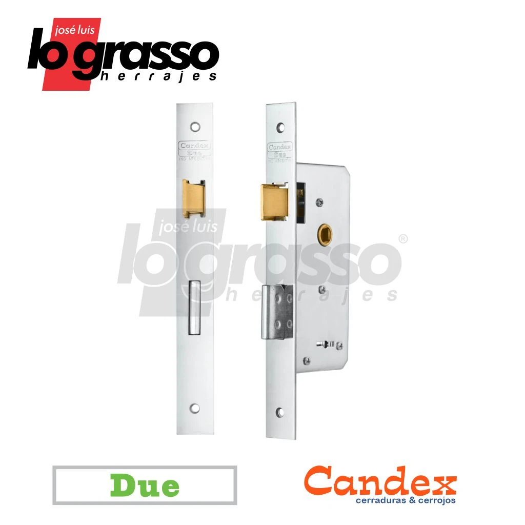 Cerradura de pasador rectangular y frente de hierro niquelado.