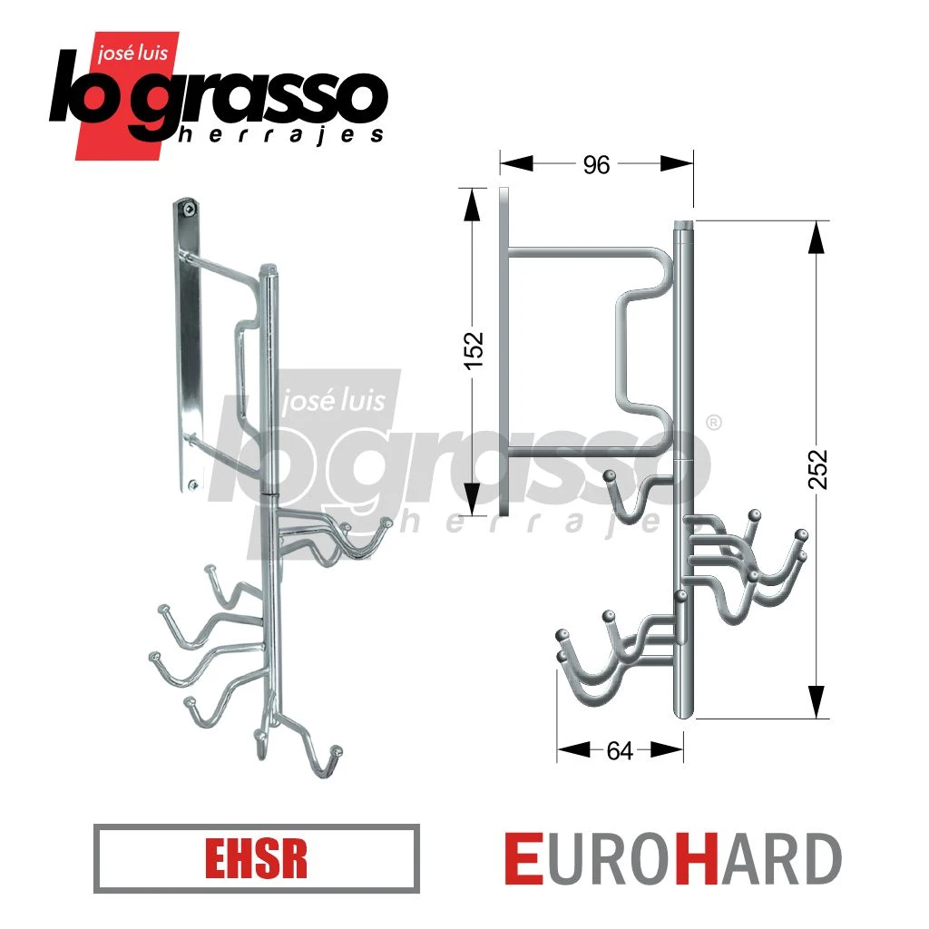 Material: Estructura y perchas de hierro, todo cromado.