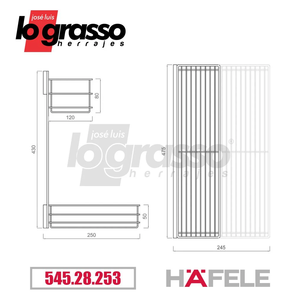 Medidas: Ancho abajo. 245mm Alto total. 430mm Alto bandeja. 50mm Prof. 475mm