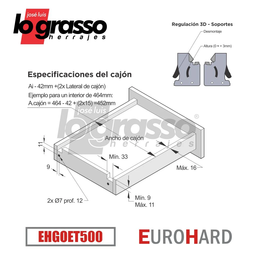 Deslizamiento a rodillos. Con regulación en altura de posición del cajón,