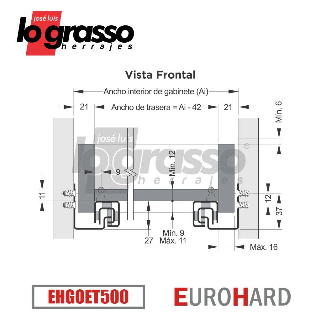 desde los soportes plásticos. Para laterales entre 12 y 16mm y piso 12mm mínimo.