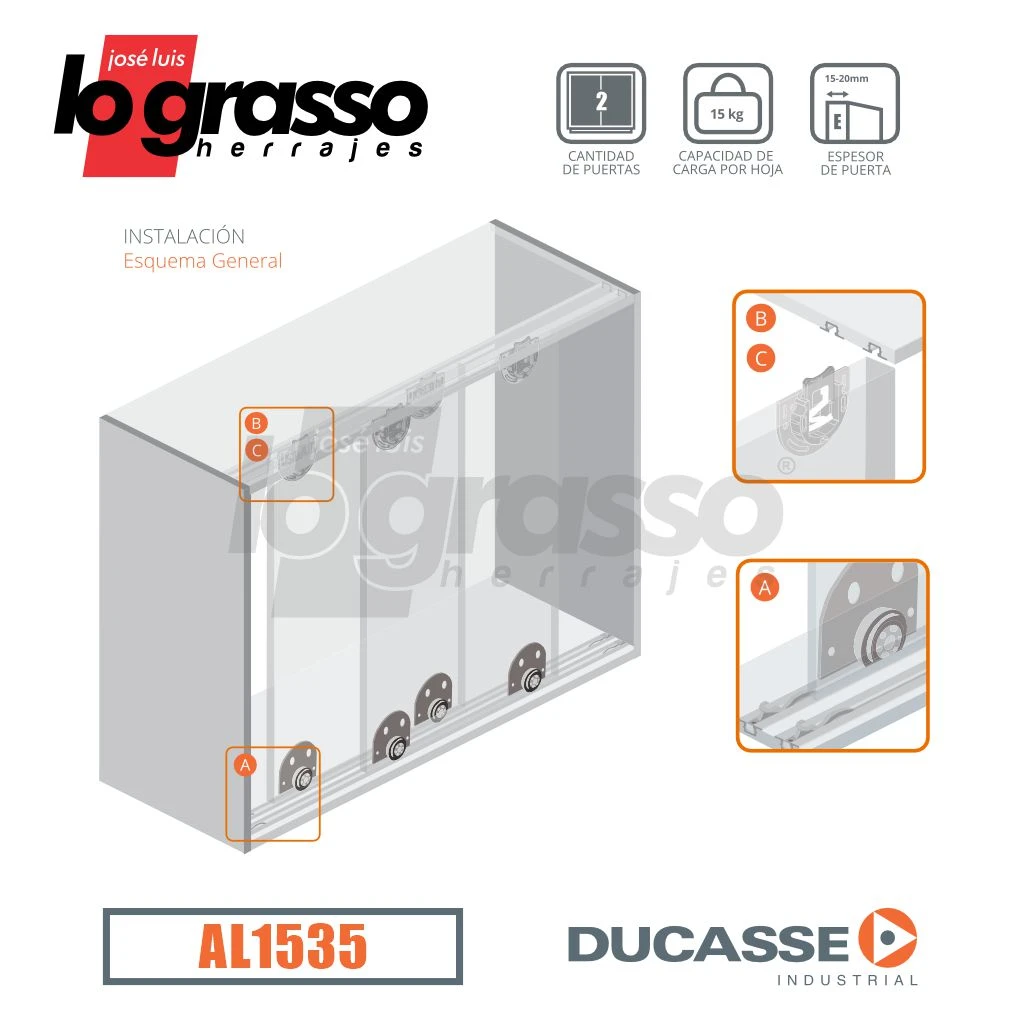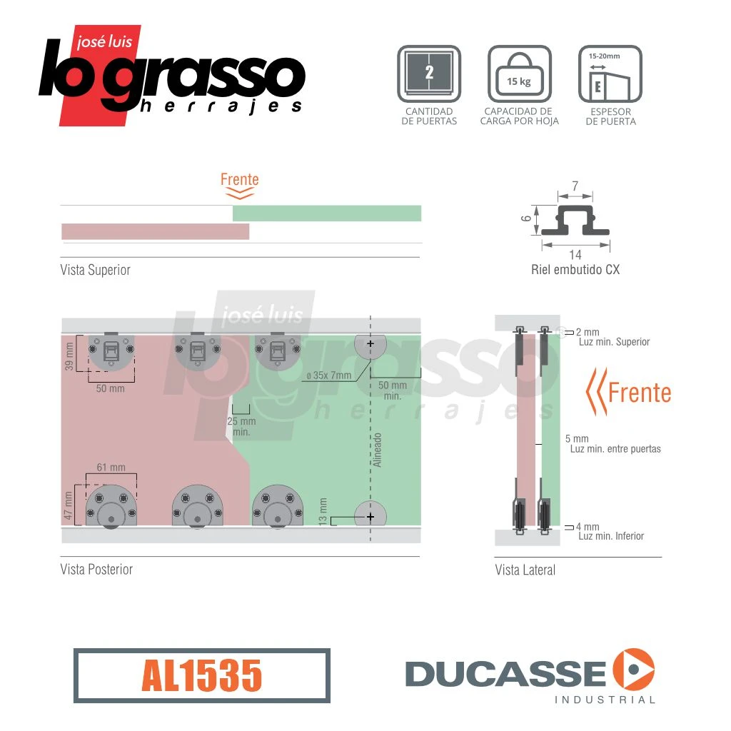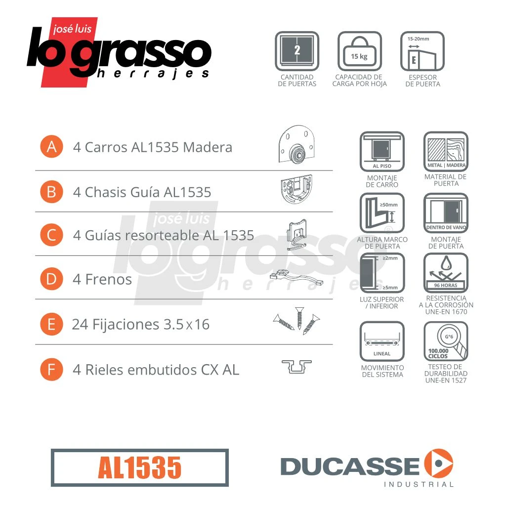 Kit Corredizo AL 1535 de apoyar para puertas que se deslizan dentro del vano.