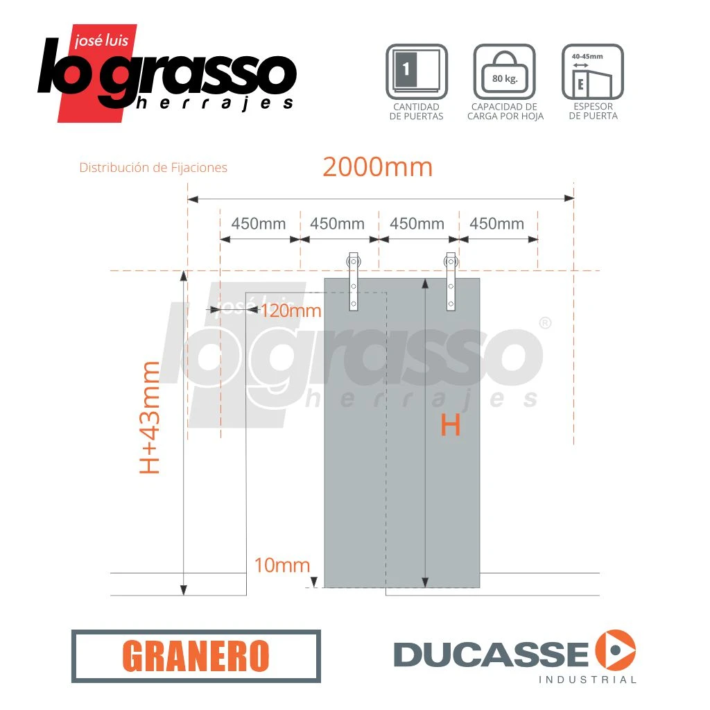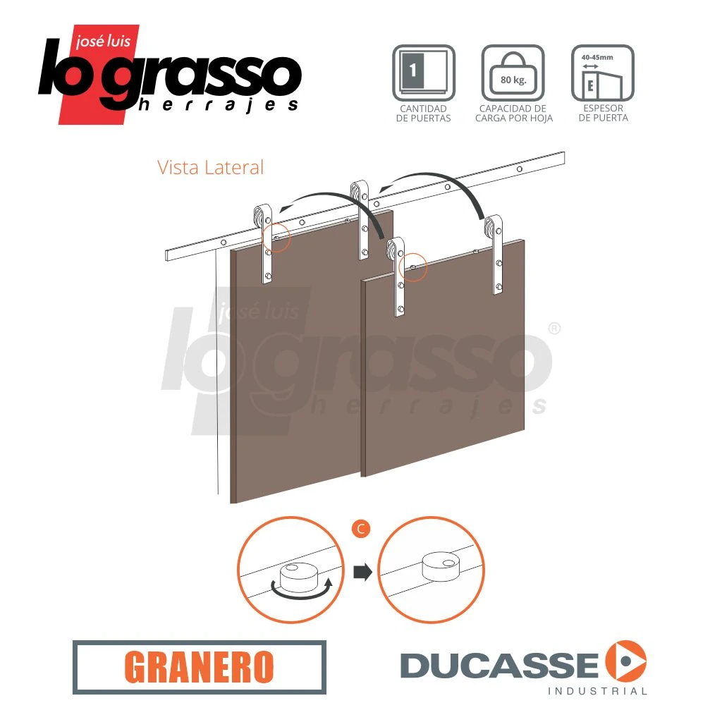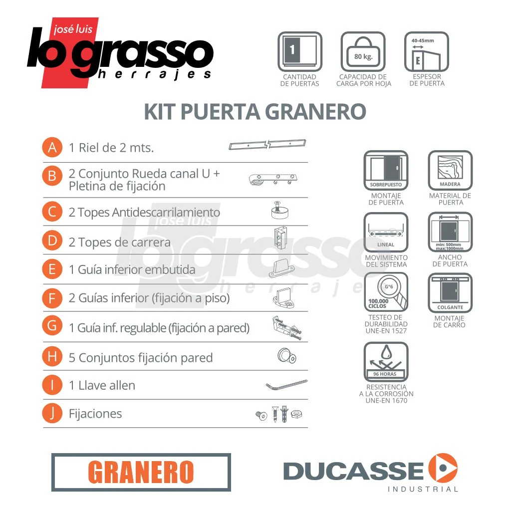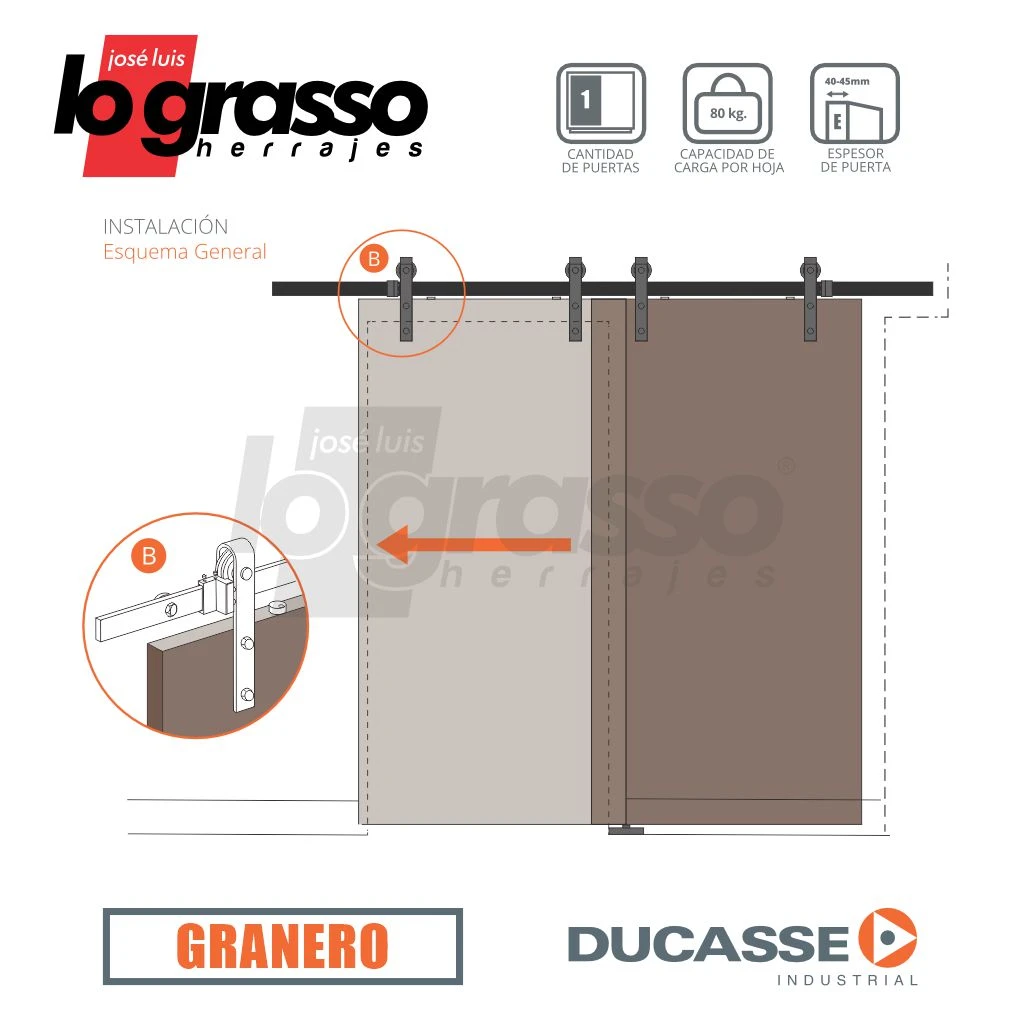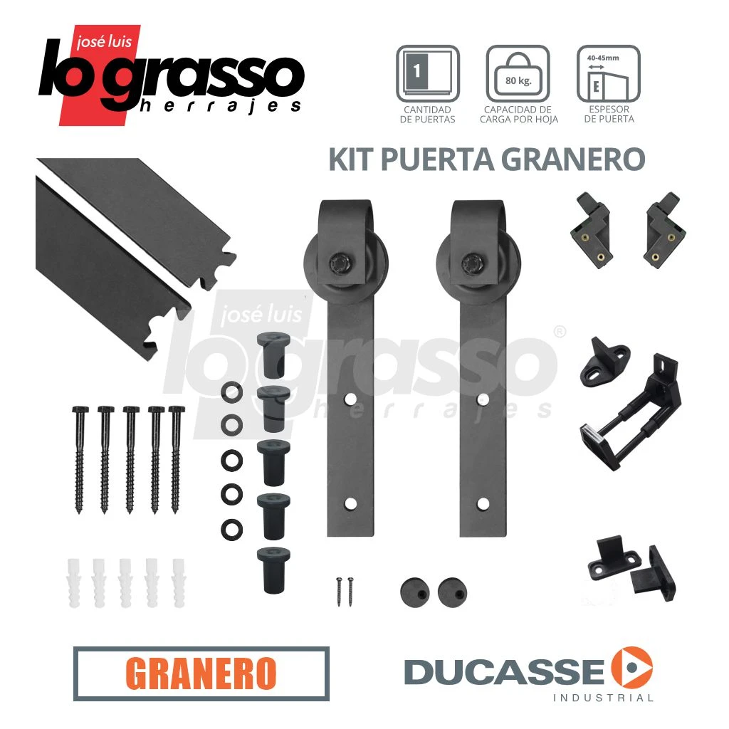 Kit Puerta Granero PREMIUM para 1 puerta de hasta 80kg.