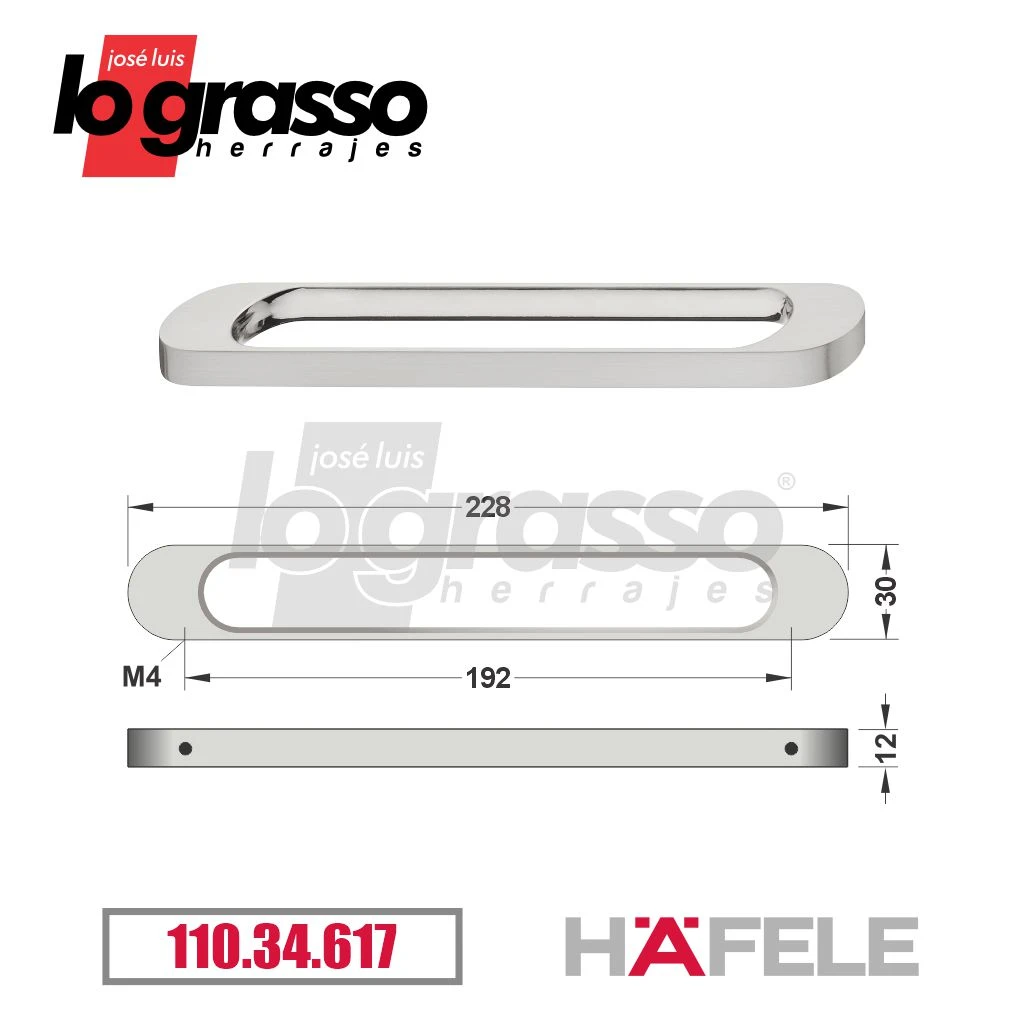Manija ovalada hueca de fundición de zinc de 192mm entre tornillos.