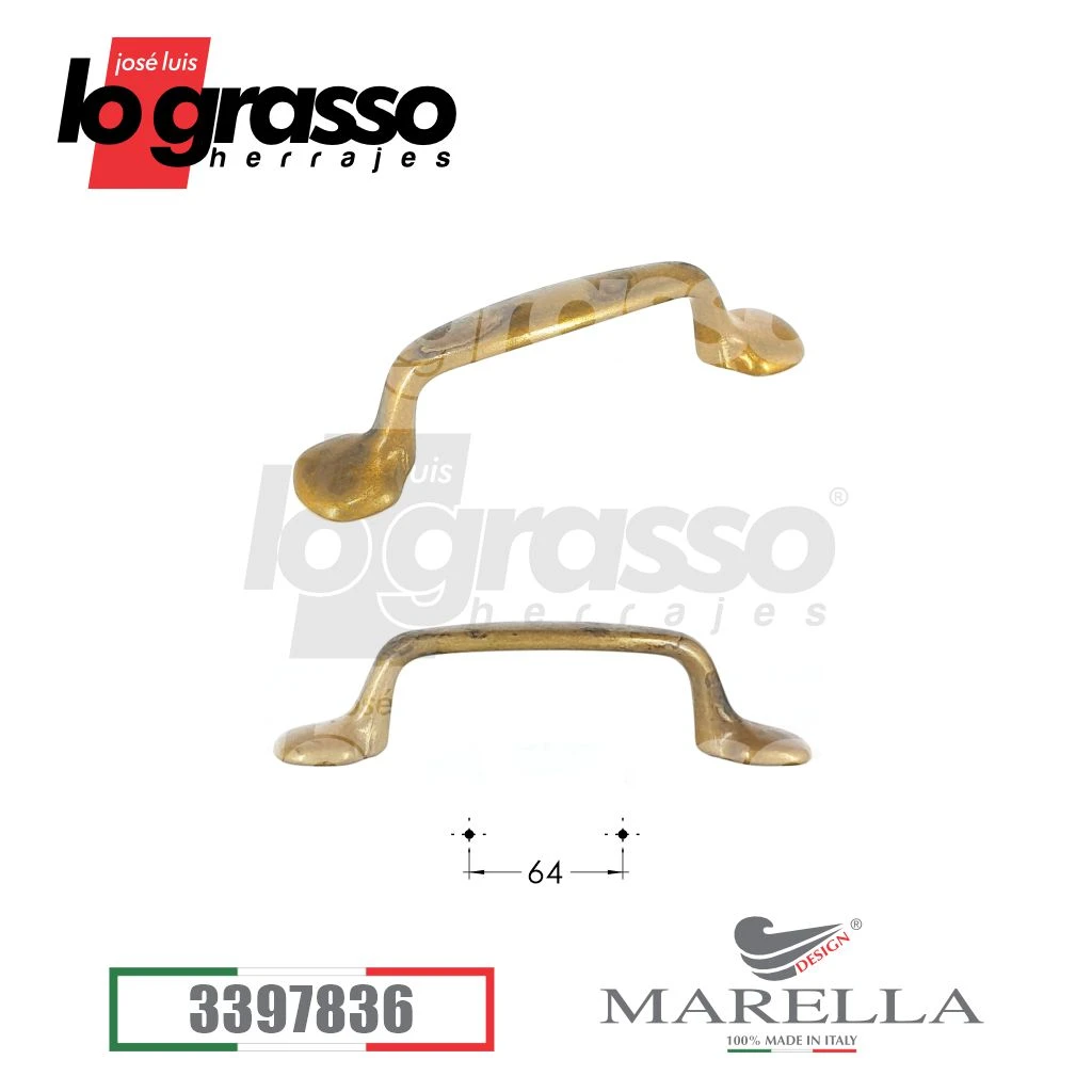 Manija Puente 64mm entre tornillos, 98mm de ancho total x 20mm de alto.