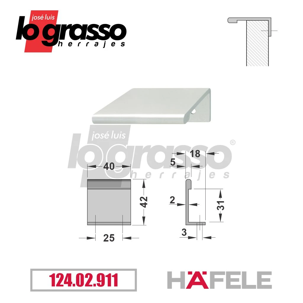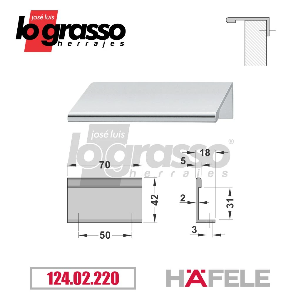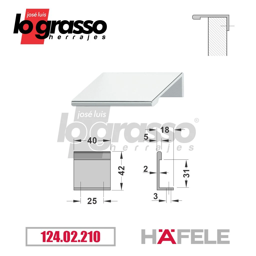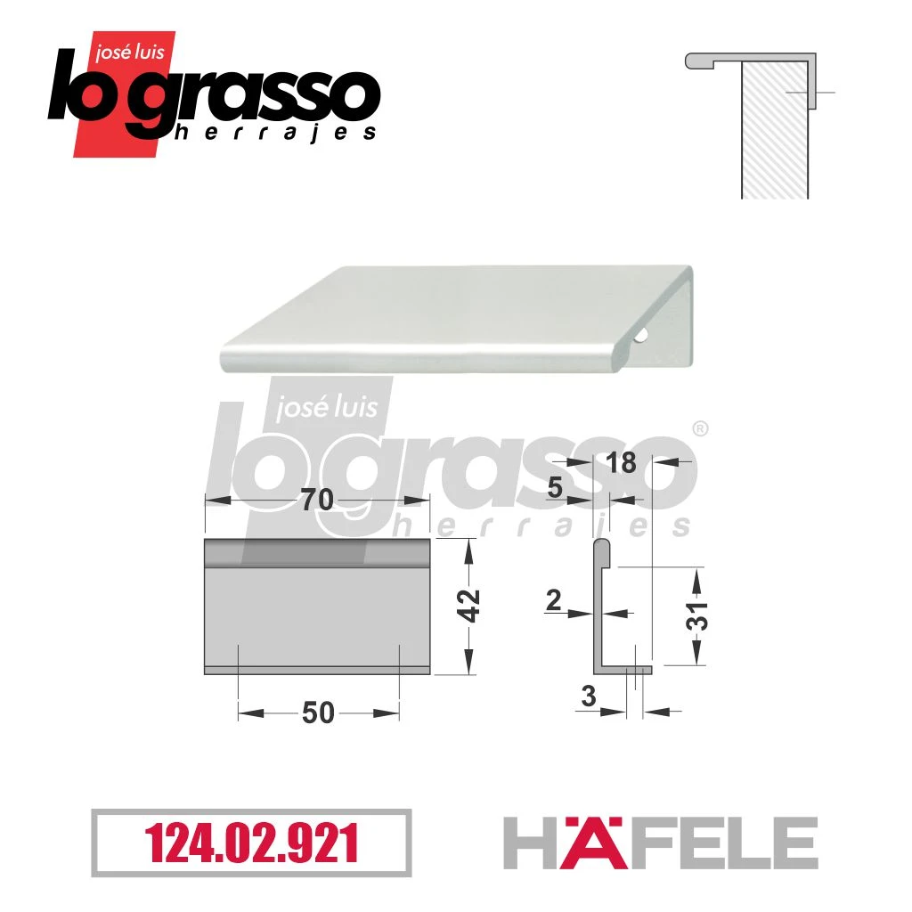 Manija perfil tipo "L" de aluminio. Para colocar desde atrás de la placa.
