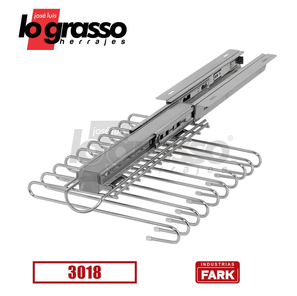 Material: Estructura de hierro, perchas cromadas y telescópicas cincadas.