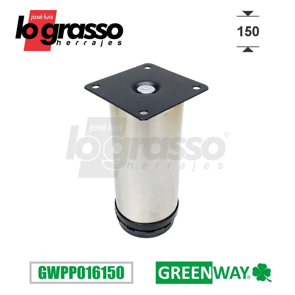 Pata Acero inoxidable de sección redonda con base metálica de 150mm de altura.