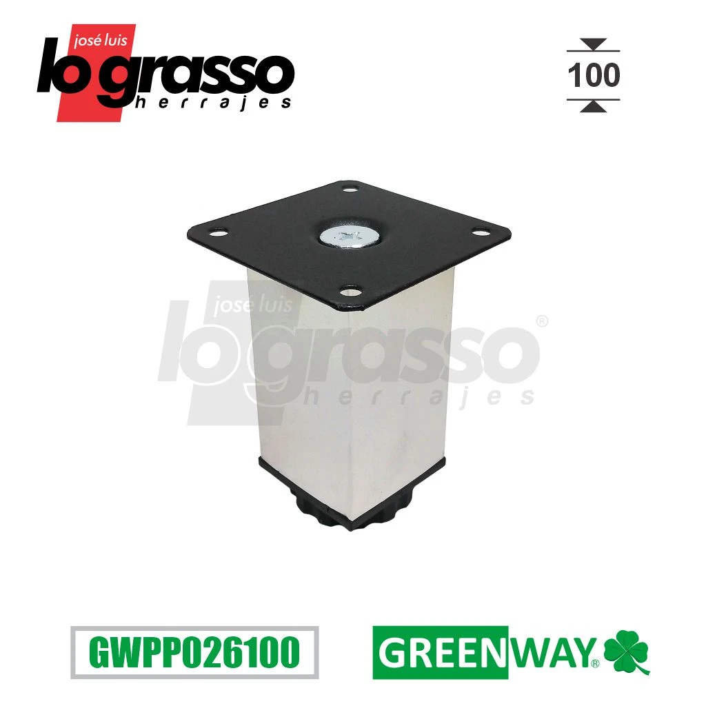 Pata Acero inoxidable de sección cuadrada con base metálica de 100mm de altura.
