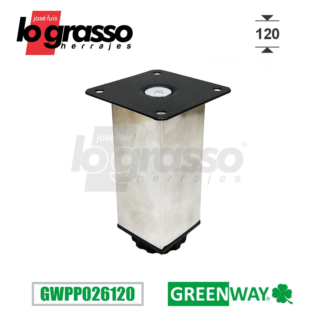 Pata Acero inoxidable de sección cuadrada con base metálica de 120mm de altura.