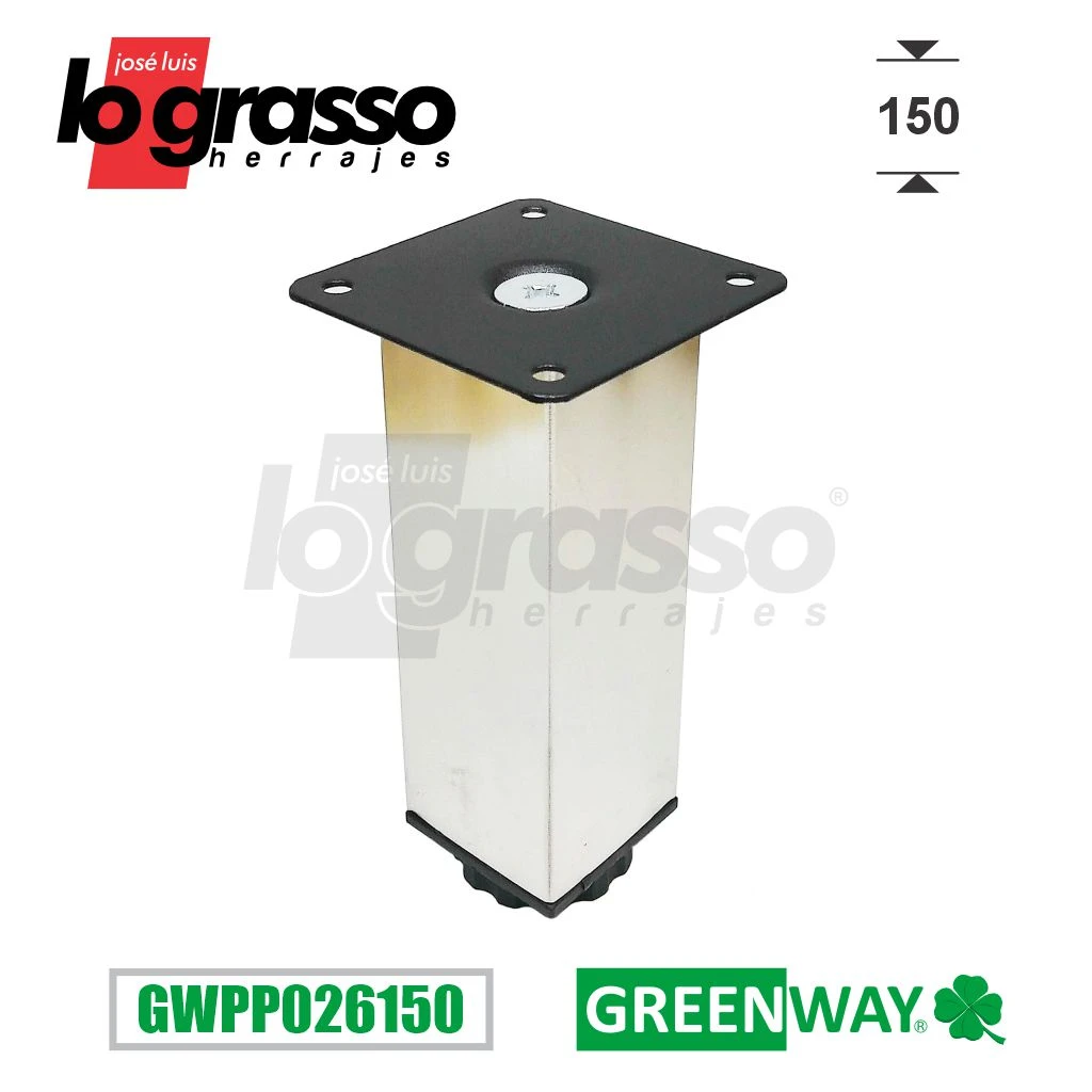 Pata Acero inoxidable de sección cuadrada con base metálica de 150mm de altura.