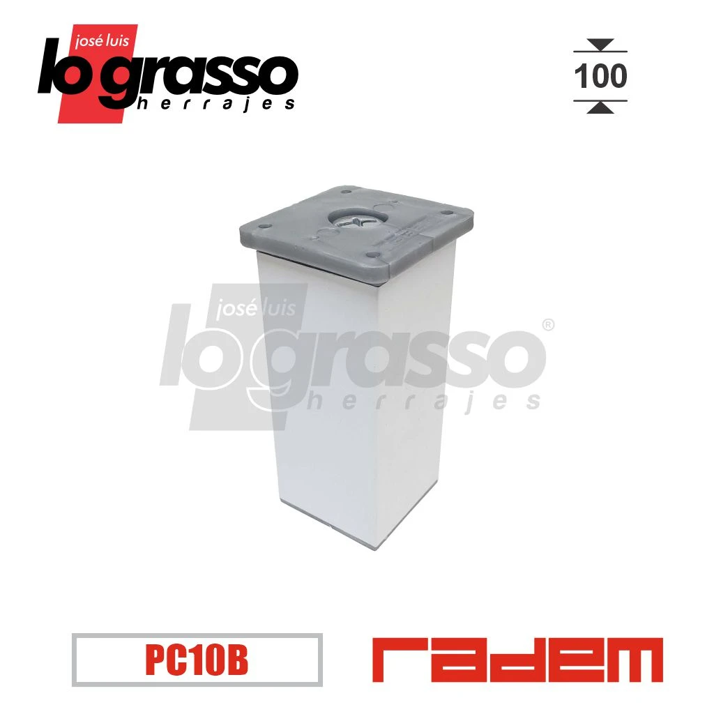 Pata Aluminio de sección cuadrada pintada de blanco con base plástica de 100mm de altura.