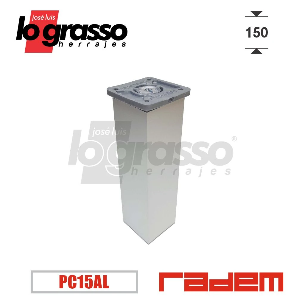 Pata Aluminio de sección cuadrada con base plástica de 150mm de altura.