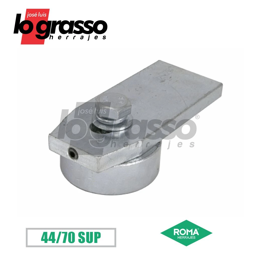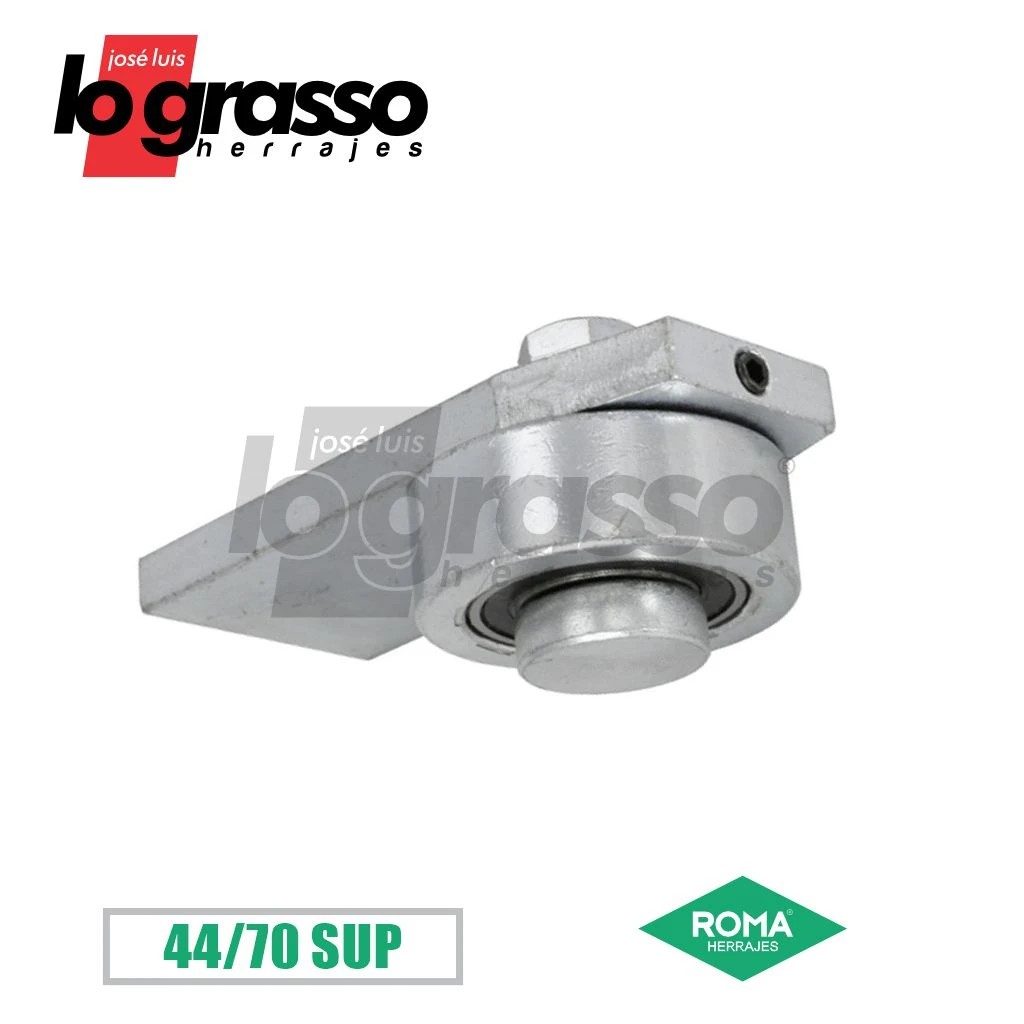 Pivot de acero torneado, montado en un rulemán blindado de 70mm de diámetro.