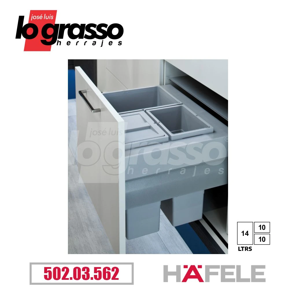Material: Marco y tapa del sistema, acero. Cubo de plástico gris.