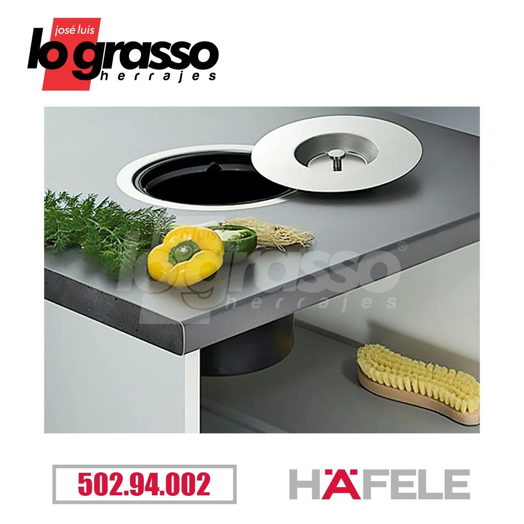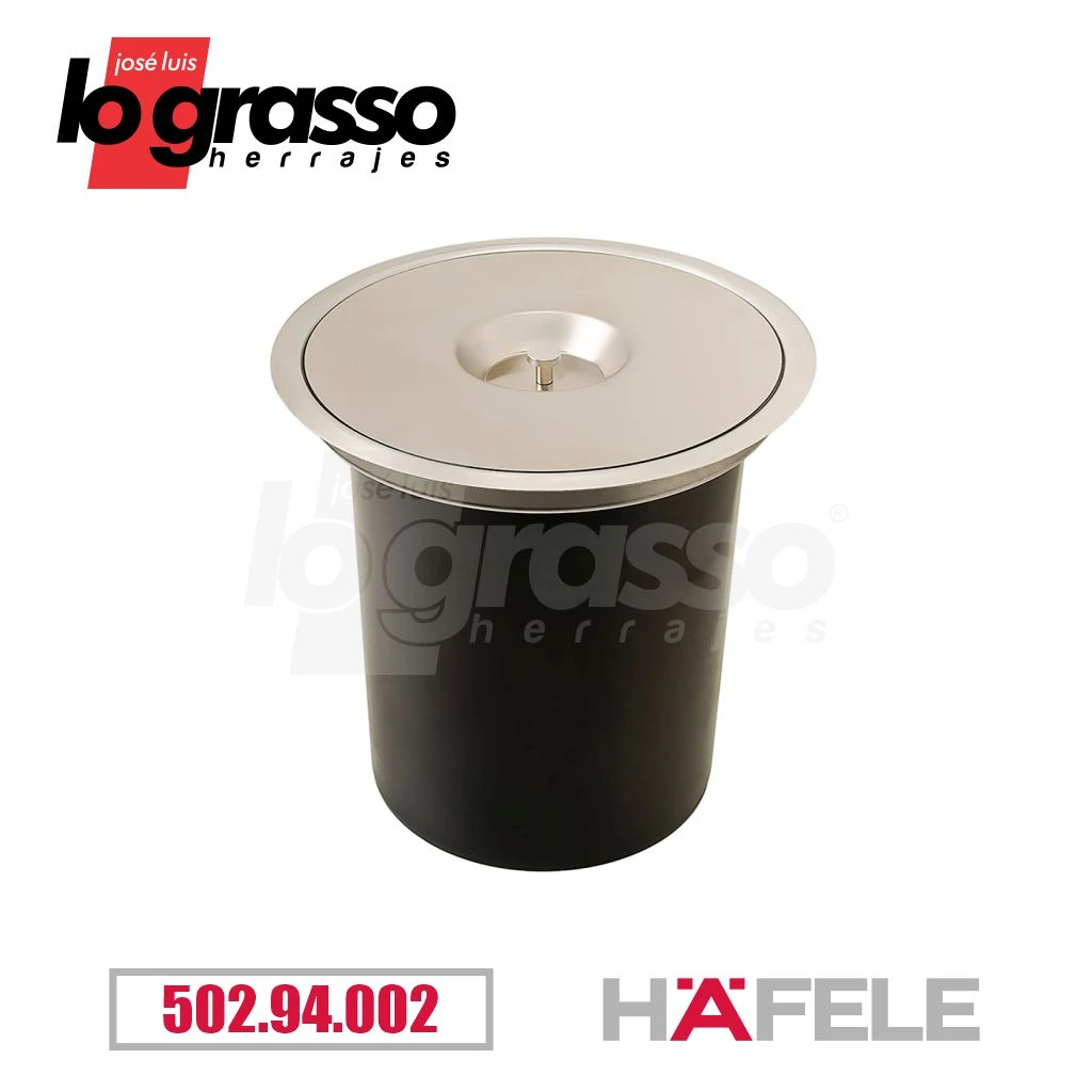 Material: Cubo de plástico. Anillo y tapa de acero inox.