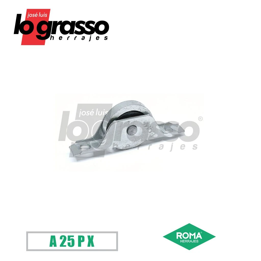 Cuerpo de chapa cincada y rulemán a bolillero con aro interno de acero y aro externo de acero o nylon.