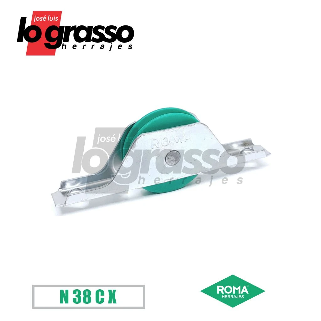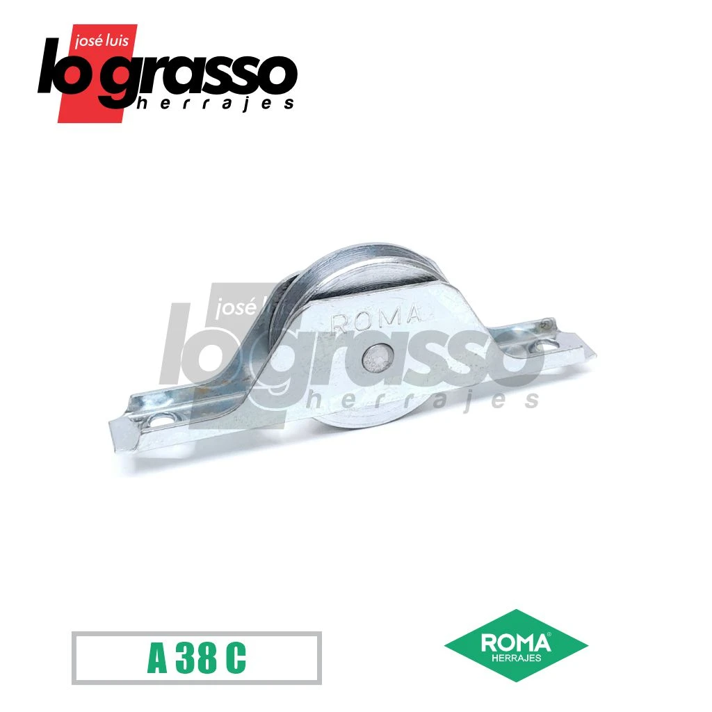 Cuerpo de chapa cincada y rulemán a bolillero con aro interno de acero y aro externo de acero o nylon.