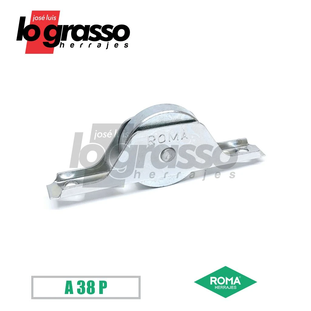 Cuerpo de chapa cincada y rulemán a bolillero con aro interno de acero y aro externo de acero o nylon.