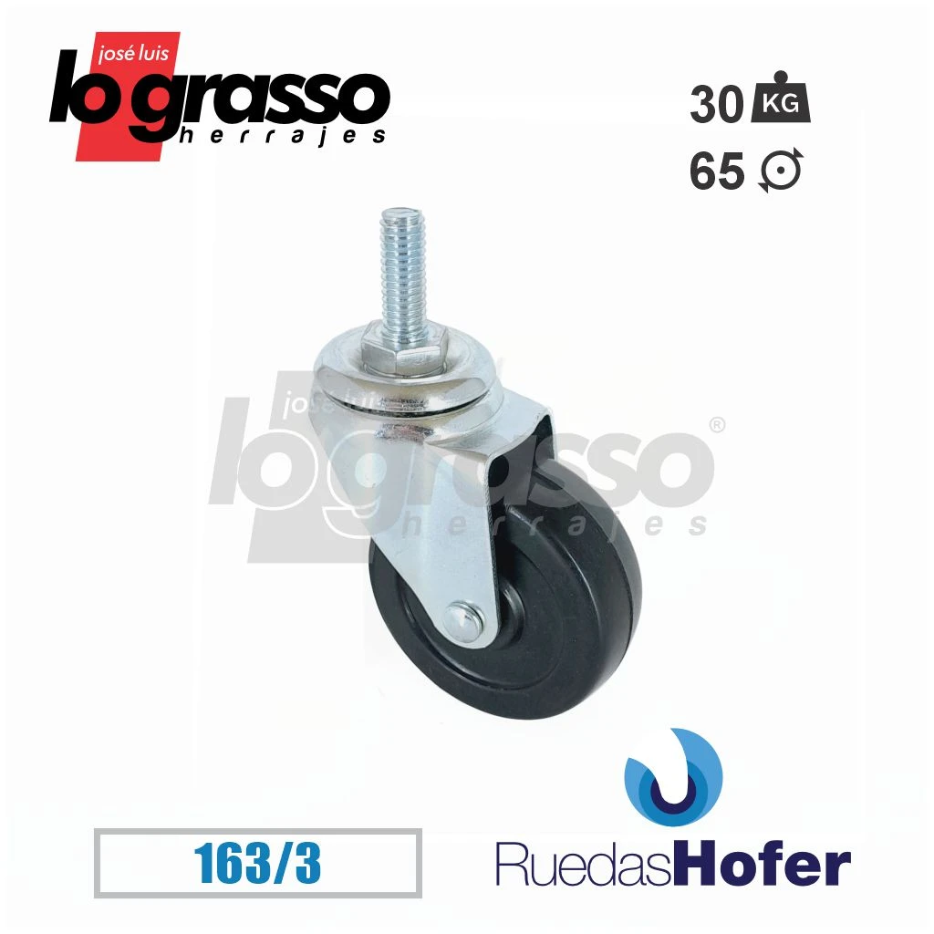 Material: Rueda de goma negra, horquilla y perno de hierro galvanizado.