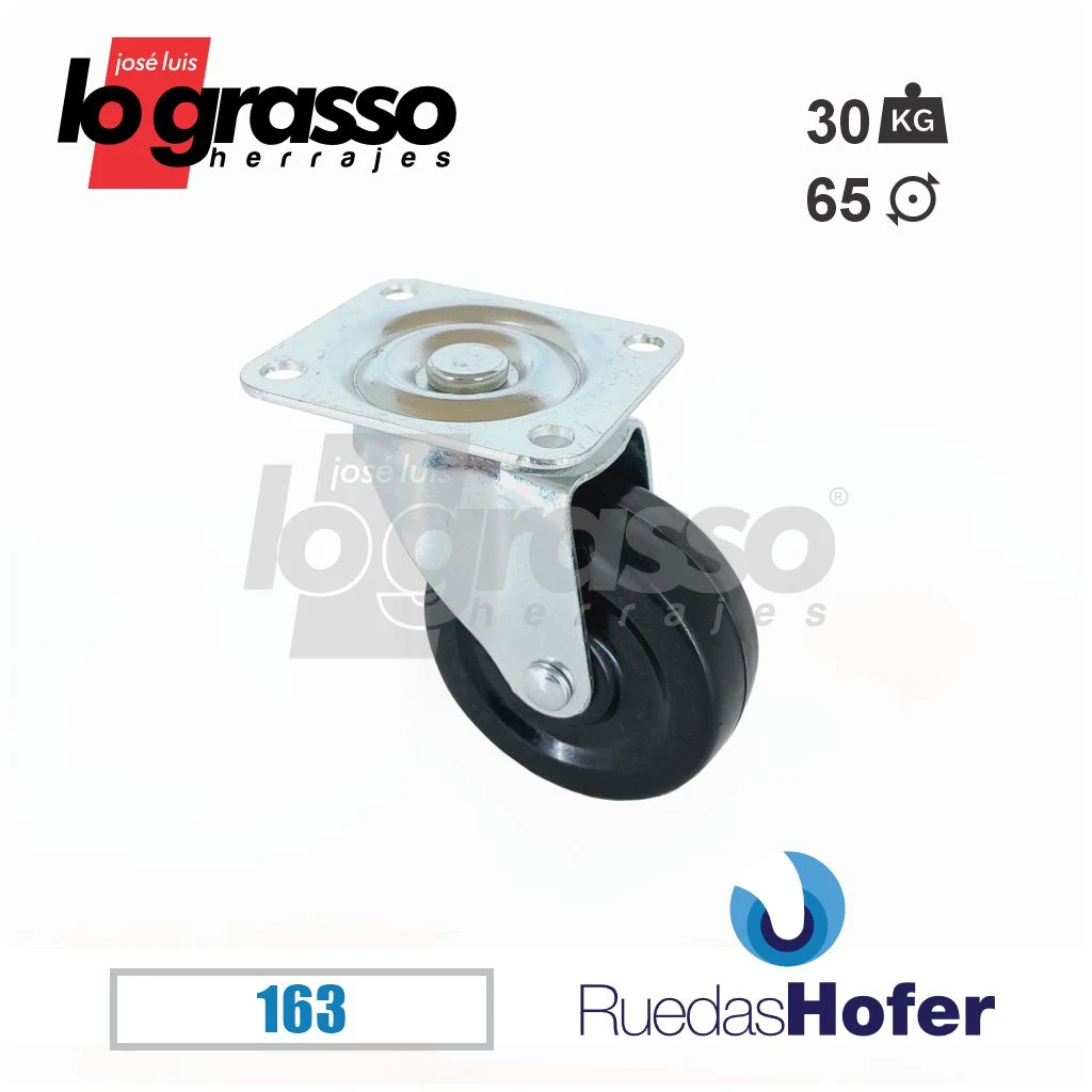 Material: Rueda de goma negra, horquilla y base de hierro galvanizado.