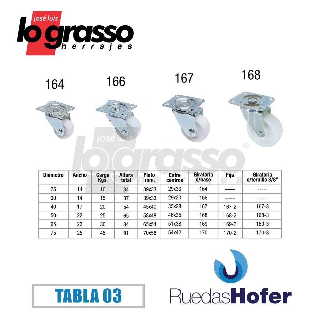 Material: Rueda de Polipropileno blanco, horquilla y base de hierro galvanizado.