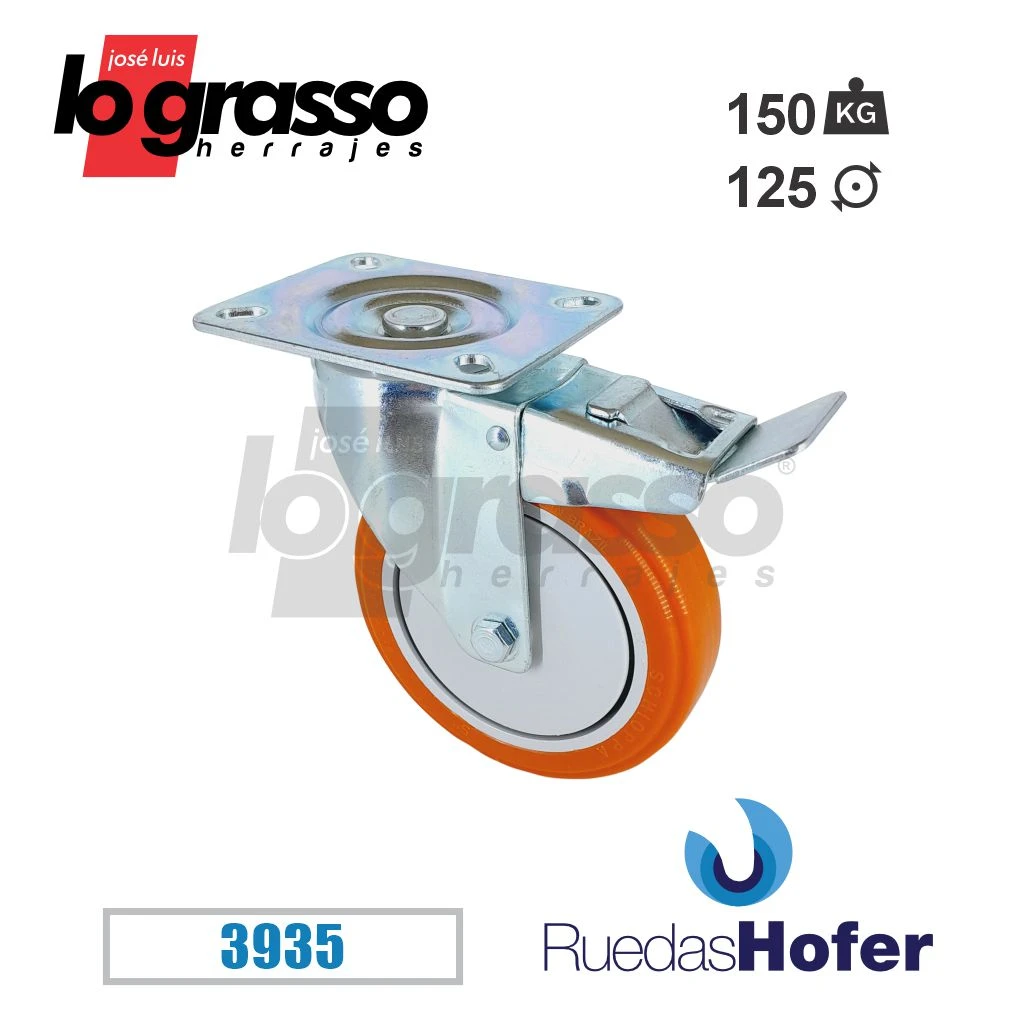 Rueda giratoria con rulemán, con freno, con base de 4 tornillos.