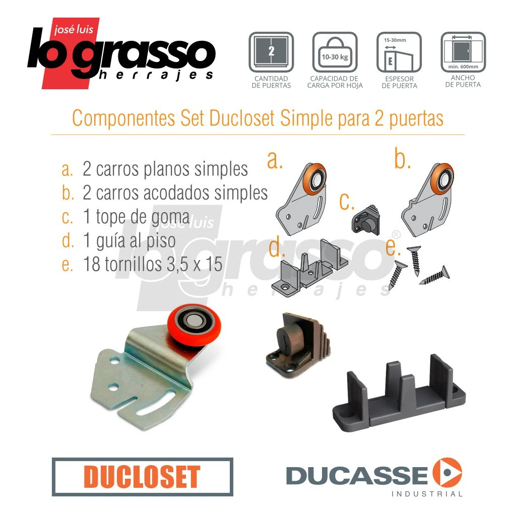 Set de carros Ducloset Simple para 2 puertas de hasta 30 kg. cada una.