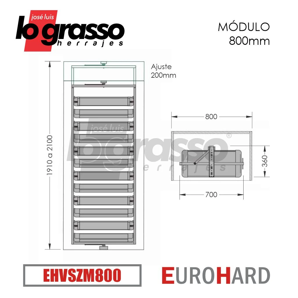 Se compone de dos artículos. Marco EHVSZM800 + Estantes EHVSZB